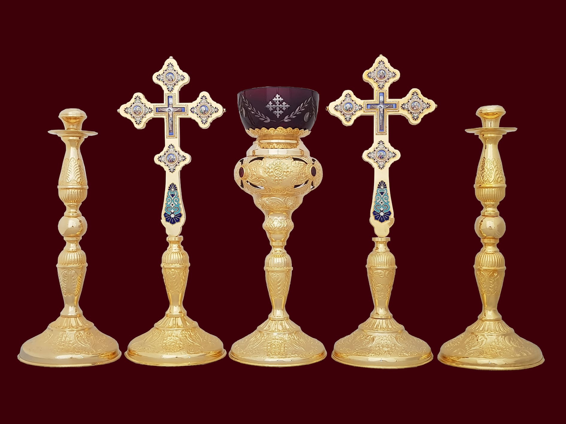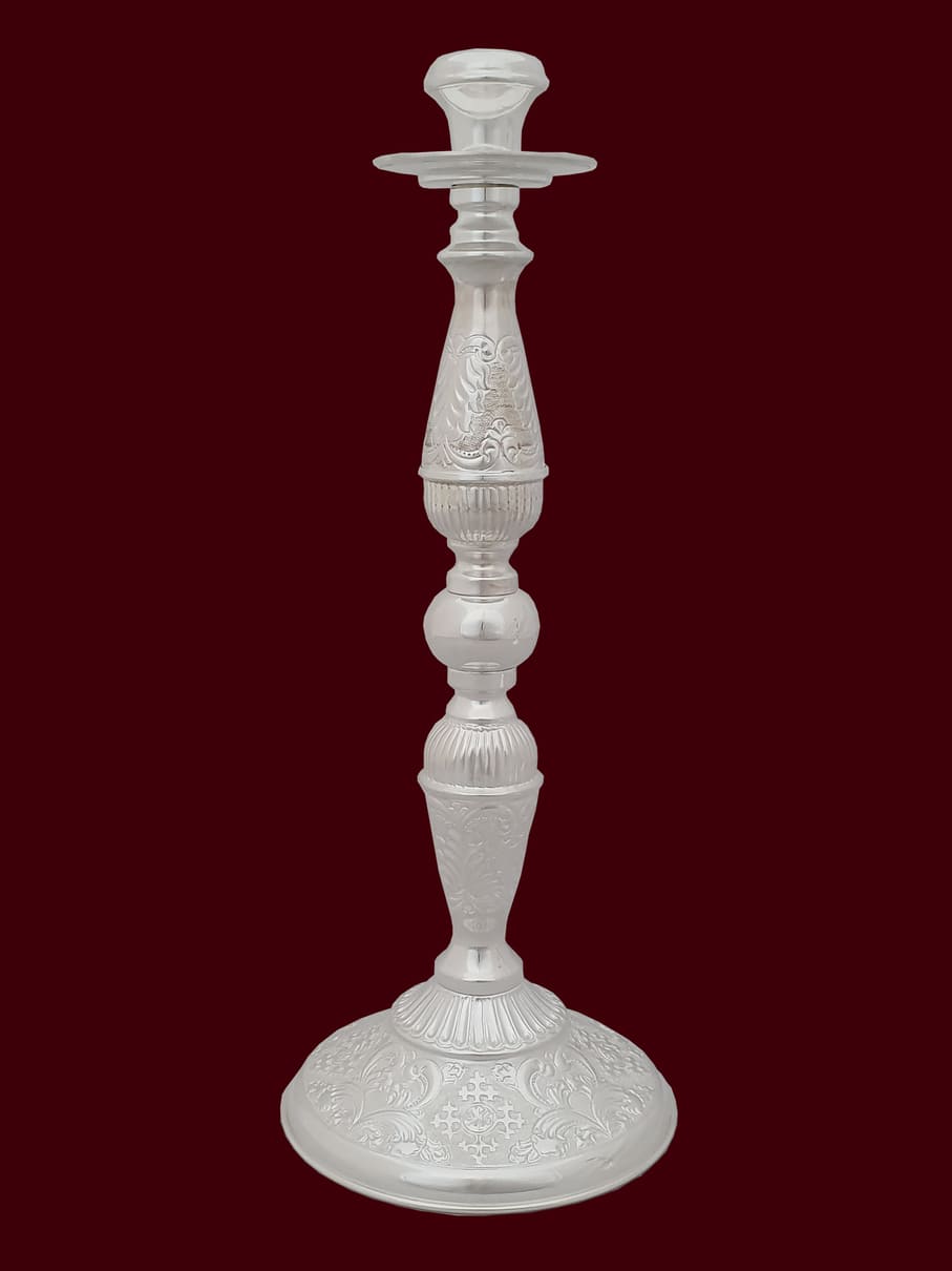Sfeșnic confecționat din argint / alamă, cizelat manual. H 38,5 cm.