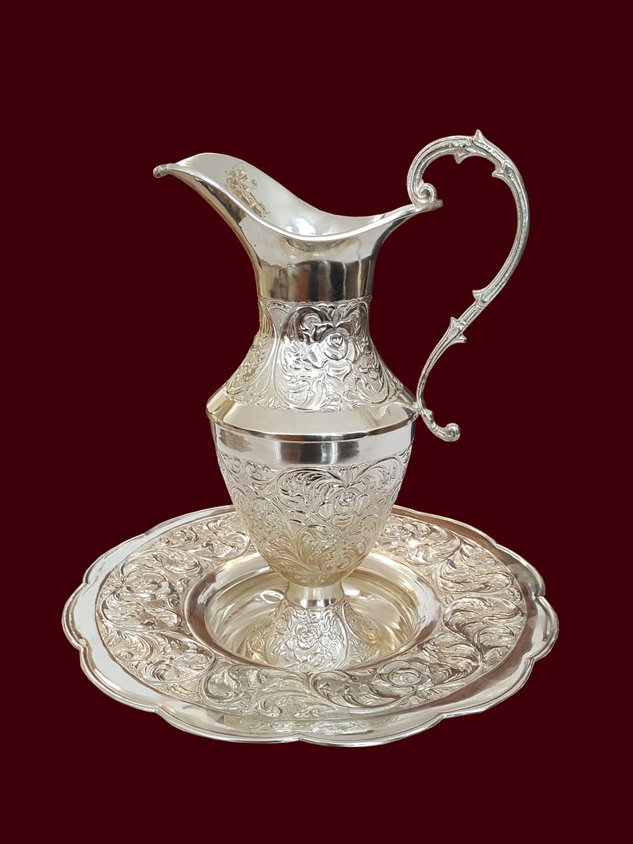 Vas – Spălător pentru Arhiereu, confecționate din argint, cizelate manual. Dimensiuni ø 35 cm / 1800 ml.